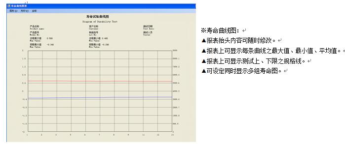 荷重–行程曲线图、寿命曲线图、测试报表、皆为A4标准纸张规格,且由电脑打印机直接列印。