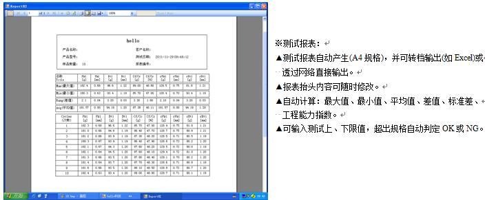 荷重–行程曲线图、寿命曲线图、测试报表、皆为A4标准纸张规格,且由电脑打印机直接列印。